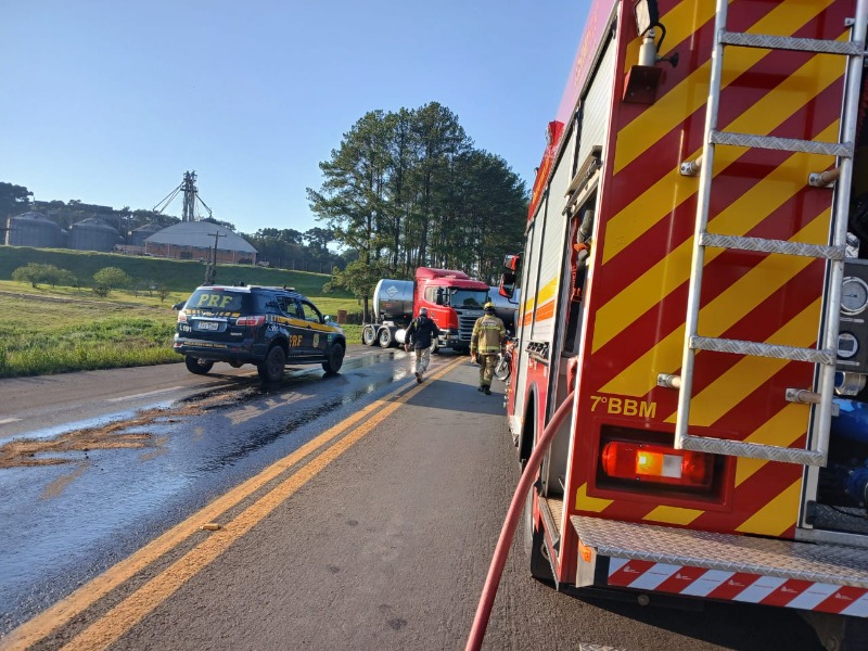 O impacto causou vazamento de diesel e danos materiais significativos. O Corpo de Bombeiros precisou lavar a pista e usou serragem para conter o combustível. A rodovia só foi liberada após o meio-dia, com auxílio de guincho e avaliação da Polícia Rodoviária Federal. As causas do acidente ainda estão sendo apuradas.