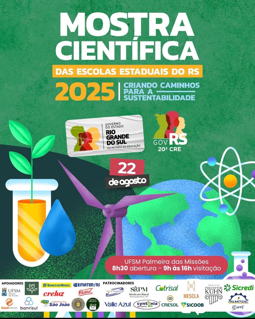 Na próxima sexta-feira (22), acontece no Campus da Universidade Federal de Santa Maria (UFSM), em Palmeira das Missões, a Mostra Científica de 2025 da 20ª Coordenadoria Regional de Educação (CRE).