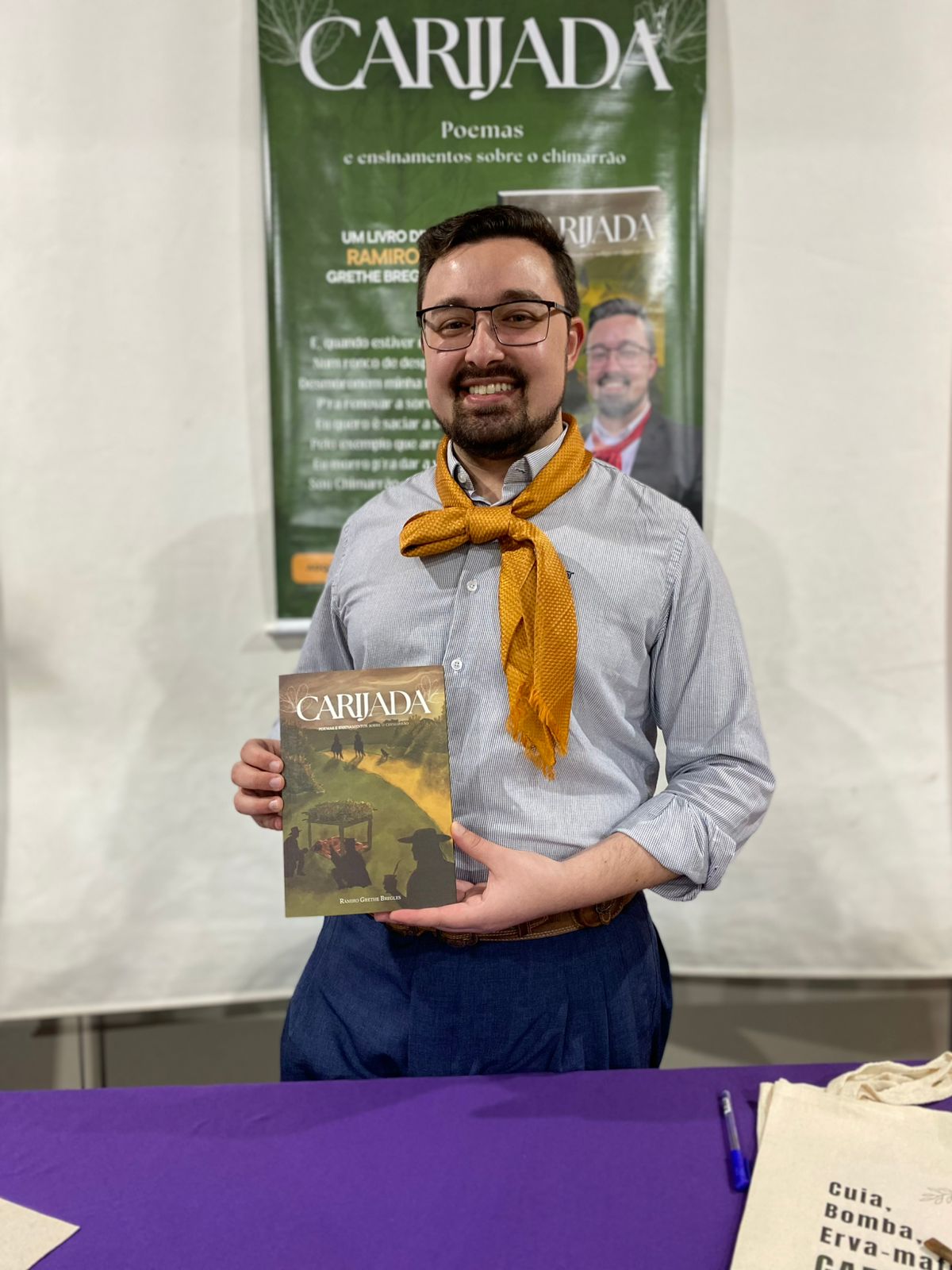 No dia 8 de outubro, o escritor e declamador Ramiro Grethe Bregles apresentou ao público seu mais recente trabalho, o livro Carijada: poemas e ensinamentos sobre o chimarrão. A obra propõe um mergulho na alma do povo gaúcho, tendo o mate como fio condutor entre versos, saberes e memórias.
