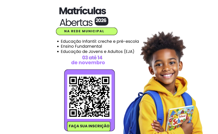 A Administração Municipal de Palmeira das Missões, por meio da Secretaria Municipal de Educação, anunciou a abertura do período de inscrições para o ano letivo de 2026 na Rede Municipal de Ensino. As inscrições estarão disponíveis de 3 a 14 de novembro de 2025, abrangendo a Educação Infantil, o Ensino Fundamental e a Educação de Jovens e Adultos (EJA).