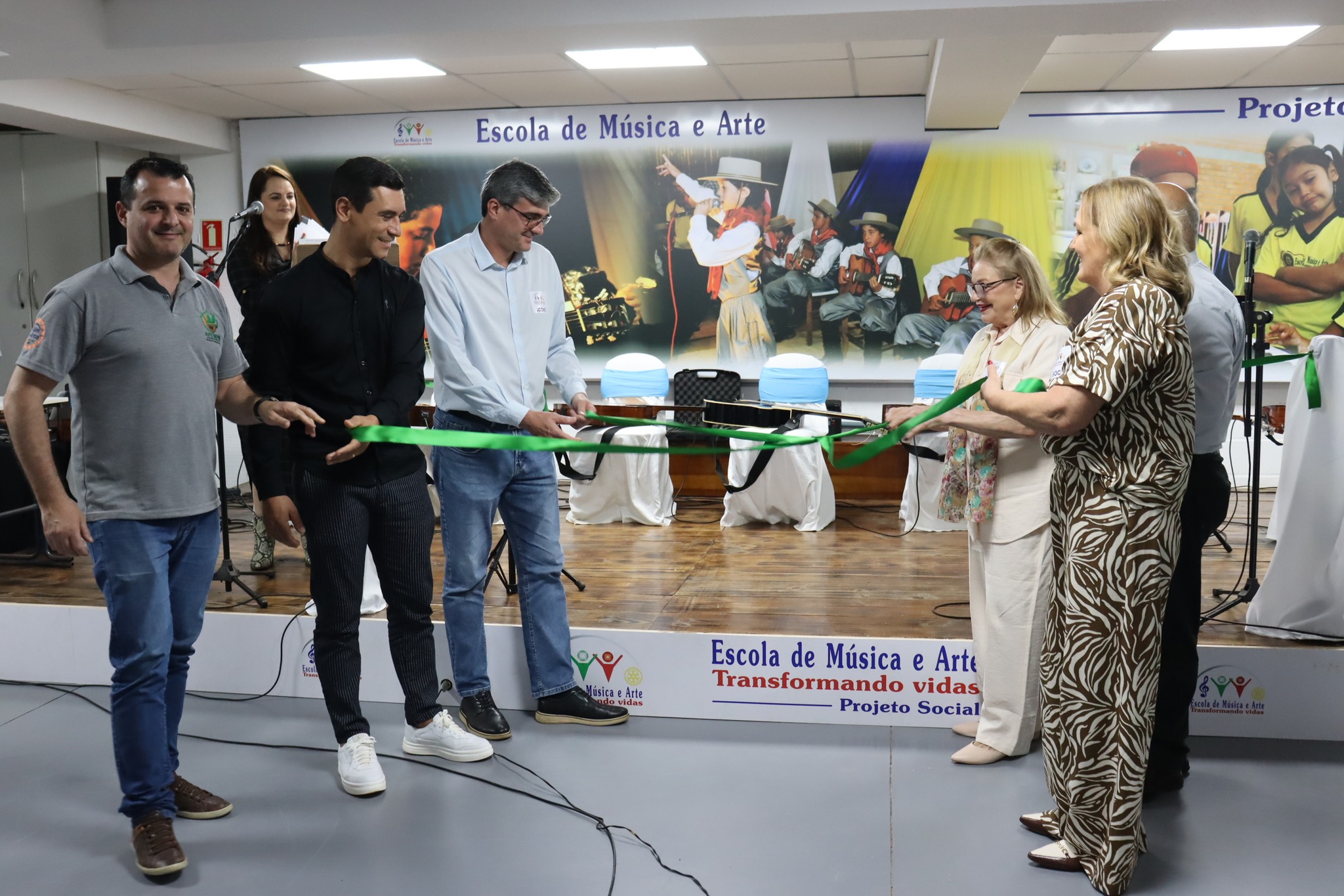 A Escola de Música e Arte realizou, na noite desta quarta-feira (05), uma cerimônia marcada por emoção e celebração, que oficializou a inauguração de sua nova sede e comemorou os 18 anos de fundação da instituição. O evento aconteceu no novo espaço, localizado na Avenida Independência, 708 (andar térreo – Lojas Lebes), reunindo convidados, apoiadores, alunos e familiares.