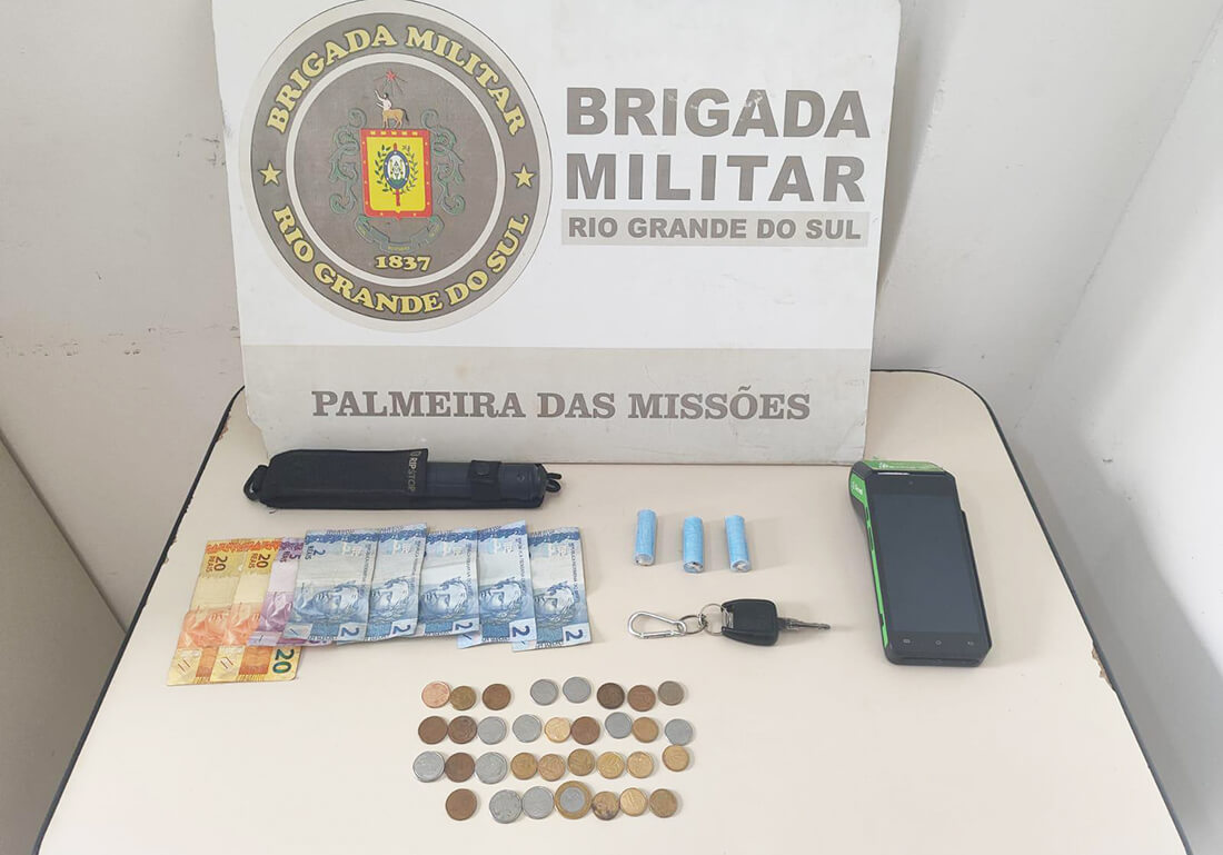 Abordagem da Brigada Militar resultou na apreensão de cocaína, dinheiro e máquina de cartão