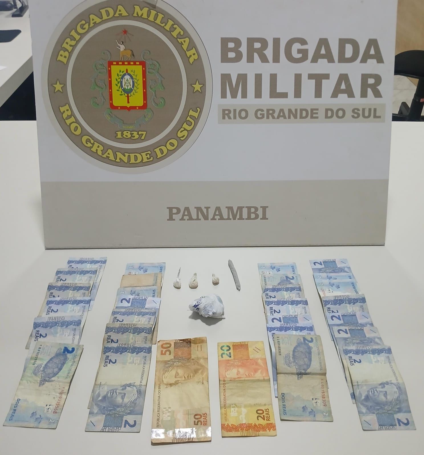 Durante a abordagem, os policiais encontraram com o suspeito uma porção de maconha, um cigarro de maconha, três pedras de crack e R$ 124,00 em dinheiro. Após a apreensão das substâncias, o indivíduo foi detido e encaminhado à Unidade de Pronto Atendimento (UPA) e, posteriormente, à Delegacia de Polícia de Panambi para registro da ocorrência.