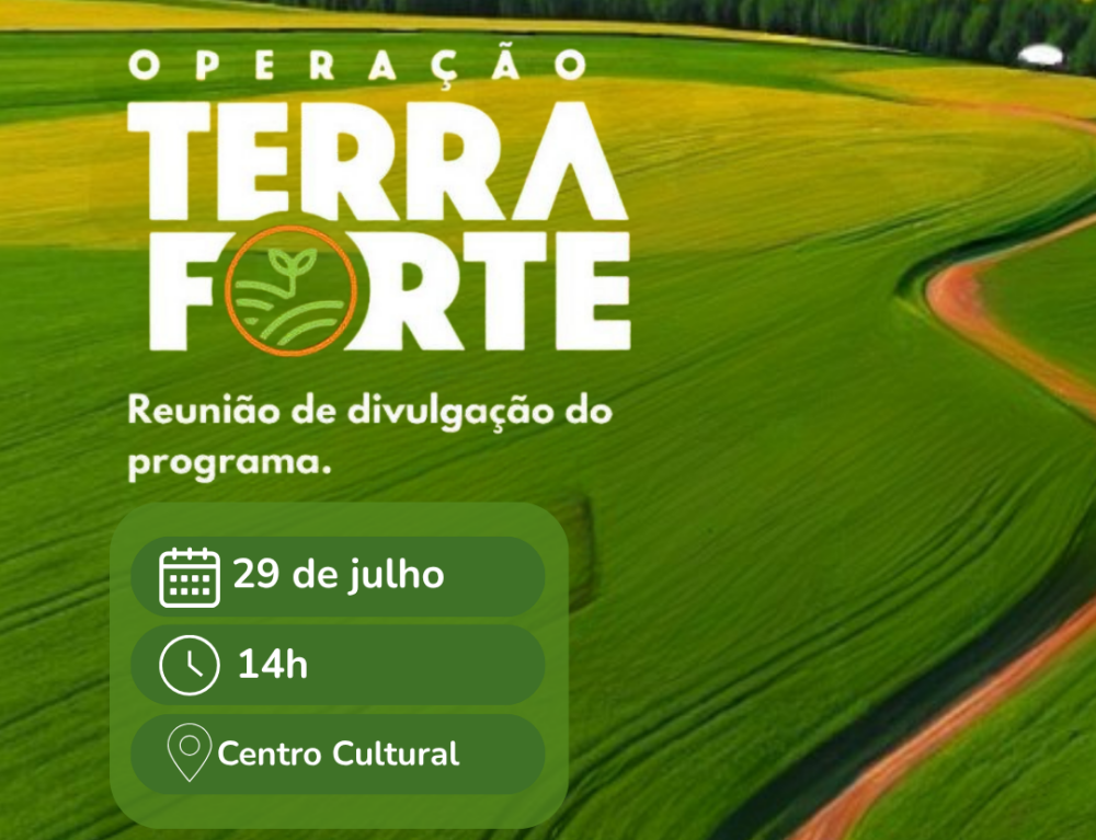 Nesta terça-feira (29), às 14h, será realizada no Centro Cultural de Palmeira das Missões uma reunião para a divulgação do Programa Operação Terra Forte. A atividade é organizada pelo Governo do Estado do Rio Grande do Sul, em parceria com a Emater/RS e a Administração Municipal, por meio da Secretaria de Agricultura e Pecuária.