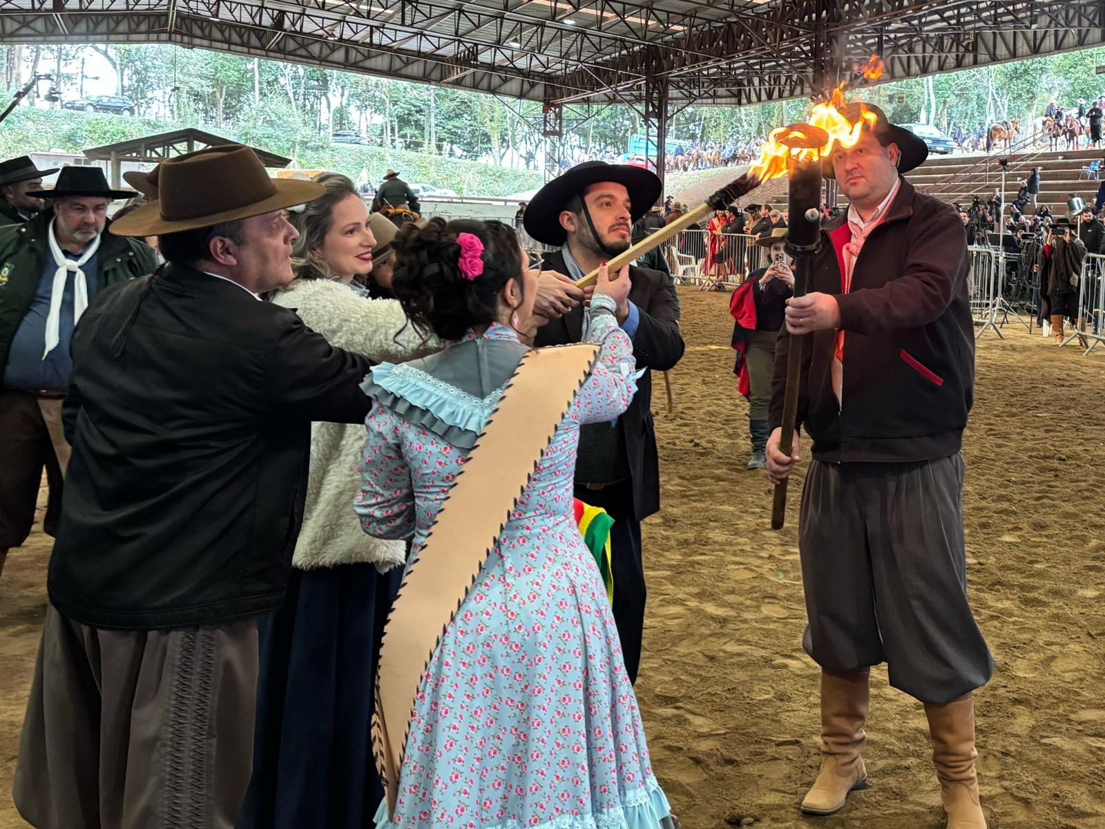Durante a solenidade, a Chama Crioula foi acesa por representantes da 17ª RT, reafirmando o protagonismo da região. O vice-coordenador Murilo de Oliveira Andrade, acompanhado por sua família, a 3ª prenda do estado e Embaixadora do Turismo do Rio Grande do Sul, Maitê Lorenzoni, e o vice-campeiro do MTG, Evandro Martins, tiveram a honra de realizar o acendimento oficial. Em seguida, repassaram a chama aos cavalarianos da 17ª, que agora a conduzem em cavalgada simbólica até Palmeira das Missões.