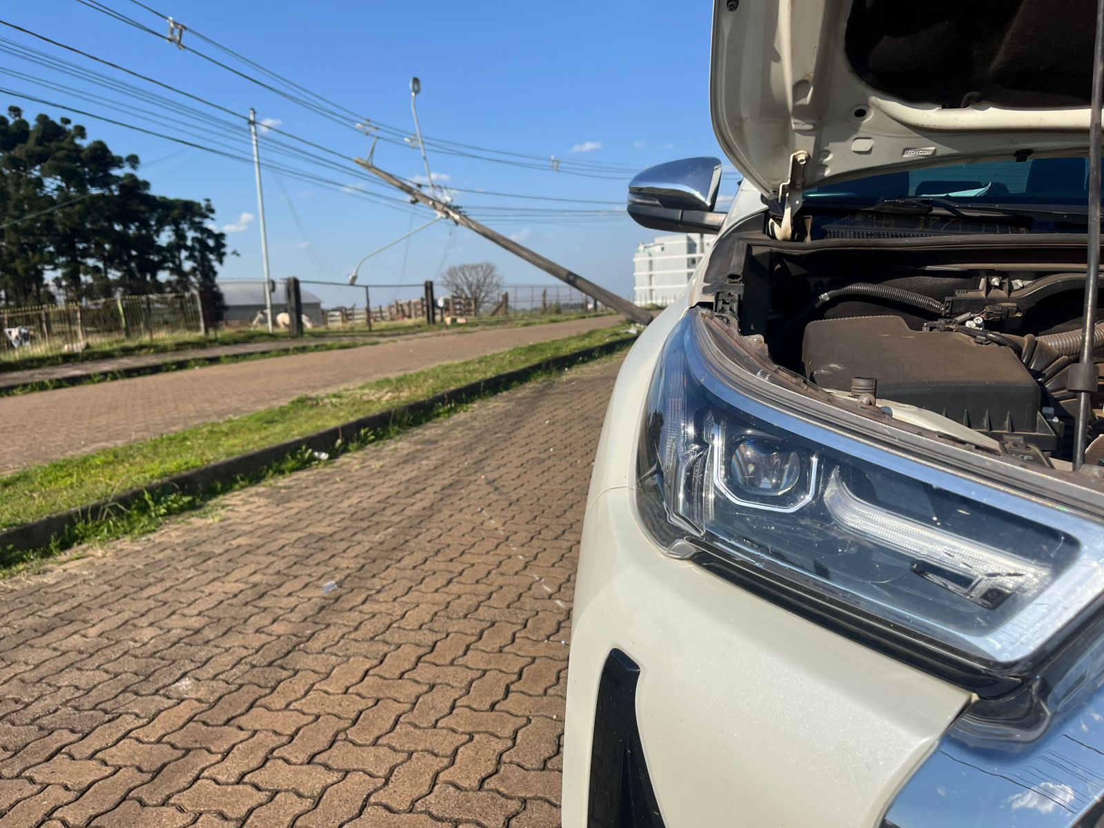 O Corpo de Bombeiros e equipes da Rio Grande Energia (RGE) atenderam a ocorrência. Com a colisão, o poste partiu ao meio e a rede elétrica precisou ser desligada, deixando parte do bairro sem energia elétrica. A caminhonete Hilux, de cor branca, sofreu danos de grande monta.