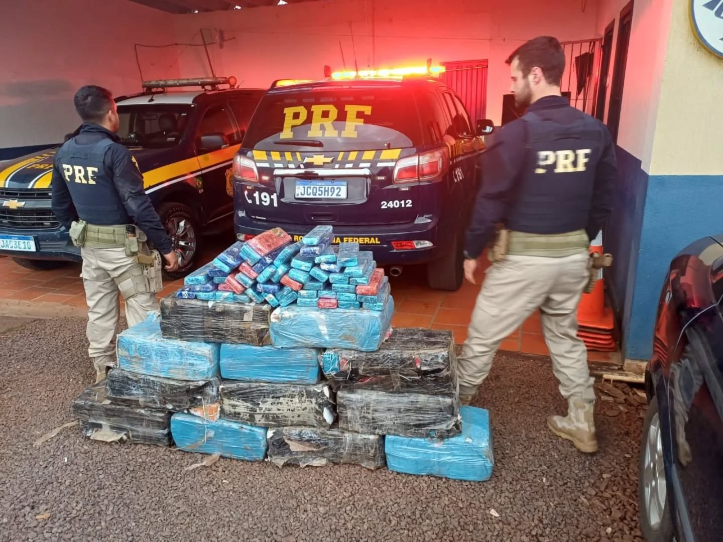 Durante a inspeção, os agentes localizaram diversos tabletes de maconha no interior do carro e espalhados pela vegetação ao redor. Ao todo, foram apreendidos 248 quilos da droga.