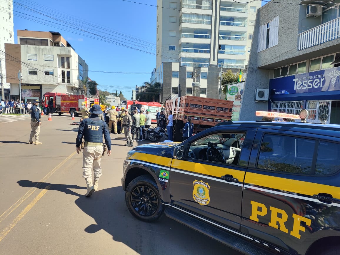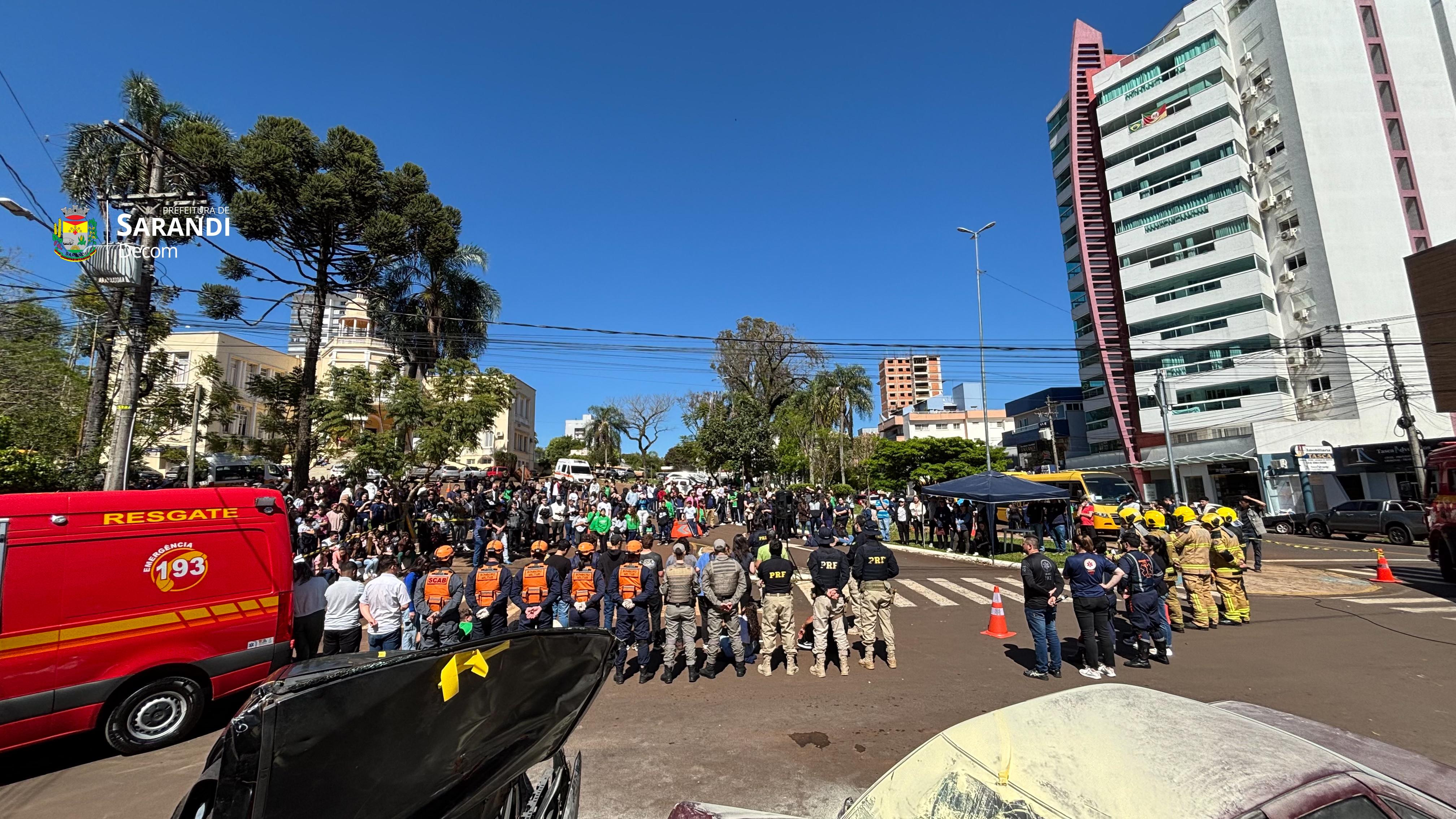 A Polícia Rodoviária Federal realizou, na manhã desta quinta-feira (25), no centro da cidade de Sarandi, uma simulação de acidente de trânsito com múltiplas vítimas. A ação contou com a participação da Brigada Militar, do Corpo de Bombeiros Militar e do SAMU.