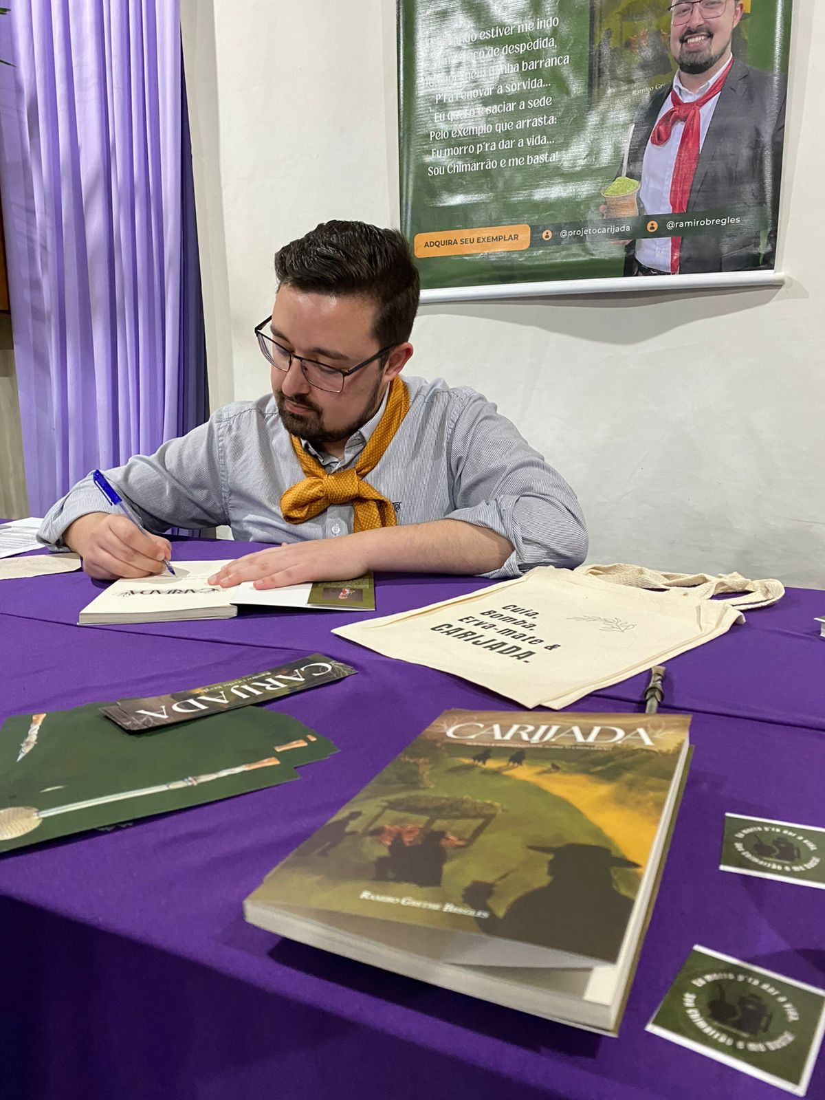 No dia 8 de outubro, o escritor e declamador Ramiro Grethe Bregles apresentou ao público seu mais recente trabalho, o livro Carijada: poemas e ensinamentos sobre o chimarrão. A obra propõe um mergulho na alma do povo gaúcho, tendo o mate como fio condutor entre versos, saberes e memórias.