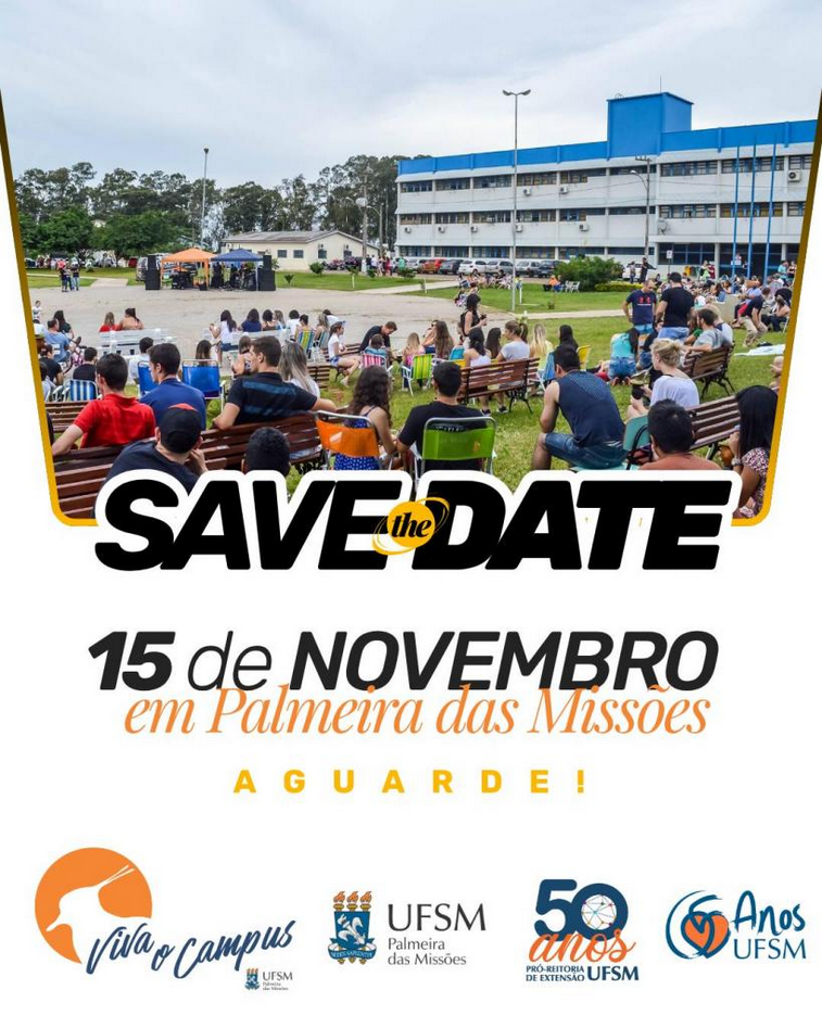 Após 7 anos, o Viva o Campus será retomado em Palmeira das Missões, marcando o retorno de um dos momentos mais especiais de interação entre a Universidade e a comunidade local e regional. O evento, gratuito e ao ar livre, acontecerá no dia 15 de novembro de 2025, das 15h30 às 19h, no campus da UFSM em Palmeira das Missões.