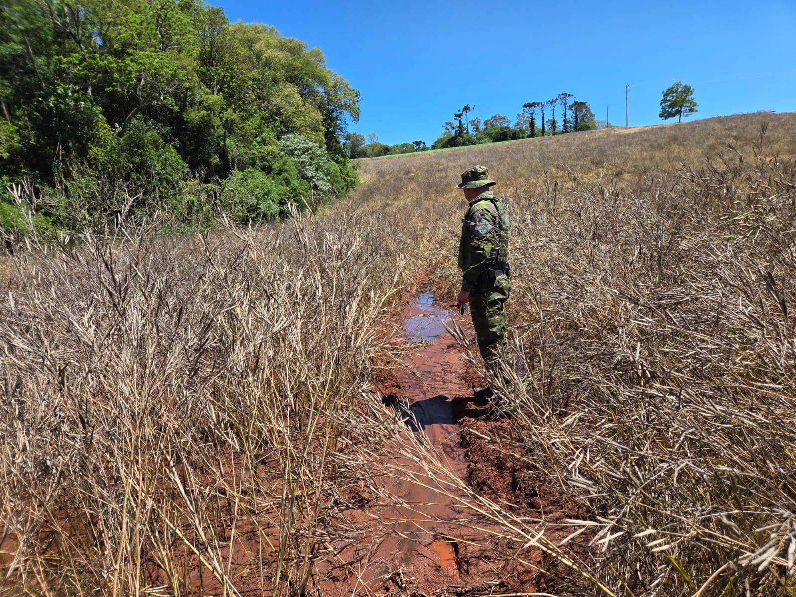 A Brigada Militar, por meio do 3º Batalhão Ambiental (BABM), flagrou, na segunda-feira, 20, poluição no solo, em uma propriedade no município de Boa Vista das Missões.