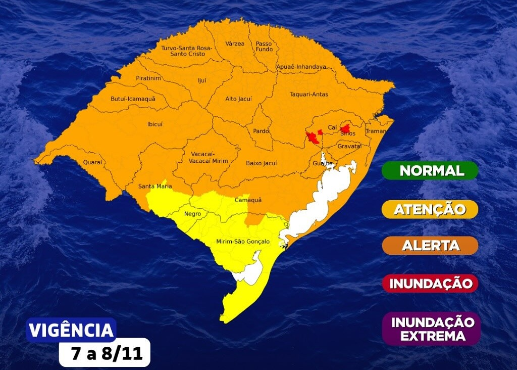 Entre a madrugada de sexta-feira (07) e o decorrer do sábado (08) de novembro, o Rio Grande do Sul deve enfrentar condições severas de tempo, conforme alerta emitido pela Defesa Civil estadual. O aprofundamento de um sistema de baixa pressão e a formação de um ciclone extratropical no oceano podem provocar chuva intensa, rajadas de vento acima de 100 km/h, queda de granizo e descargas elétricas em diversas regiões.