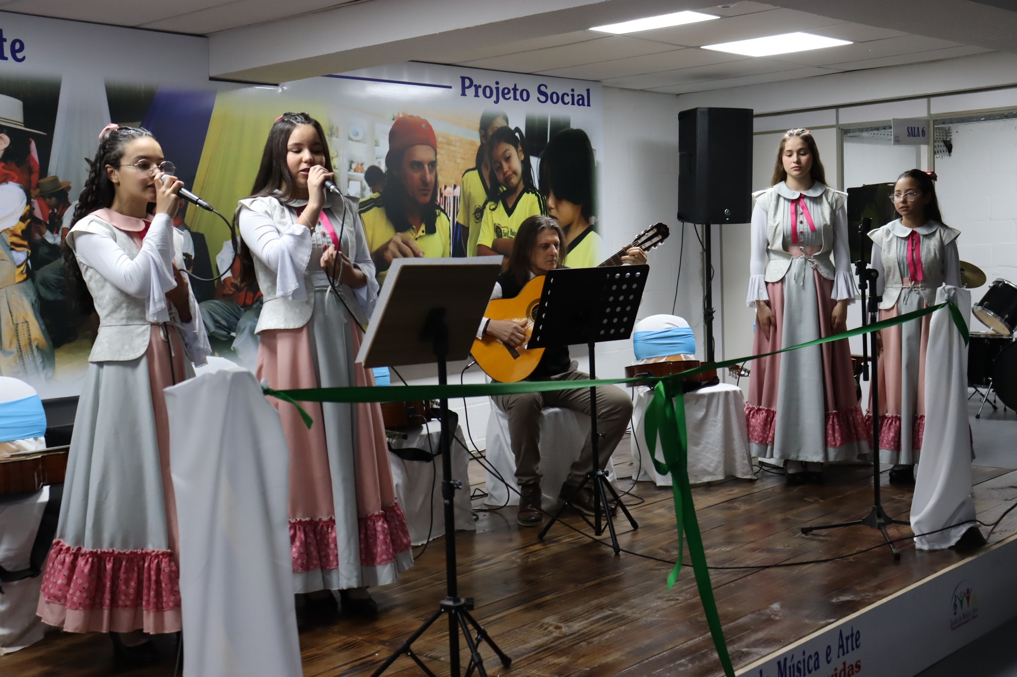 O ponto alto da noite foi a apresentação da Orquestra de Violões “As Meninas da Arte”, que encantou o público com um repertório preparado especialmente para a ocasião. O momento reforçou o compromisso da escola com a transformação social por meio da música e com o fortalecimento das expressões culturais na comunidade.