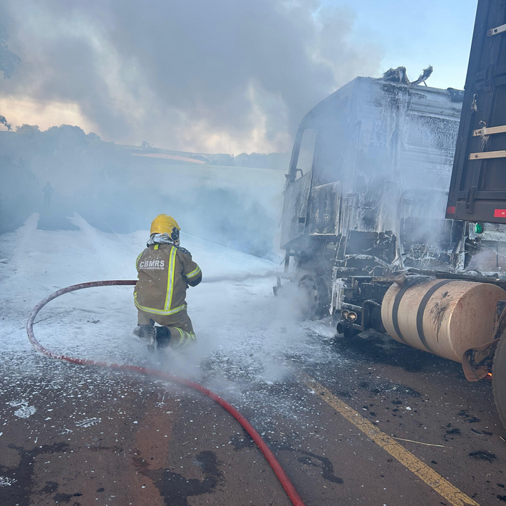Por volta das 18h desta segunda-feira (10), os Bombeiros Militares de Sarandi atenderam a uma ocorrência de incêndio em uma carreta nas proximidades do acesso ao distrito de Barreirinho, em Sarandi. O motorista, natural de Palmeira das Missões, era o único ocupante do veículo e não se feriu.