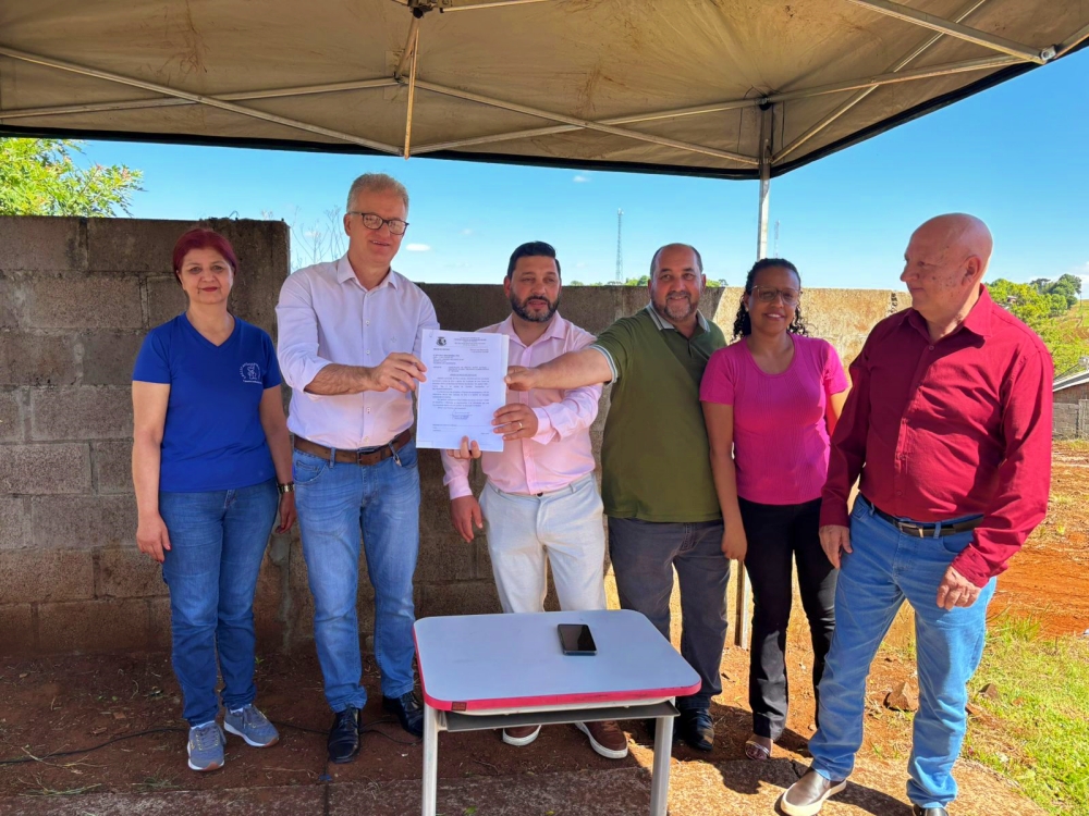 O prefeito Evandro Massing assinou, nesta quarta-feira (19), o termo de início das obras de construção de uma creche de Educação Infantil no Bairro Mutirão. A unidade seguirá o padrão FNDE – Creche Tipo 2 e será executada pela empresa Tettosul Engenharia Ltda., com recursos do Novo PAC Seleções do Governo Federal.