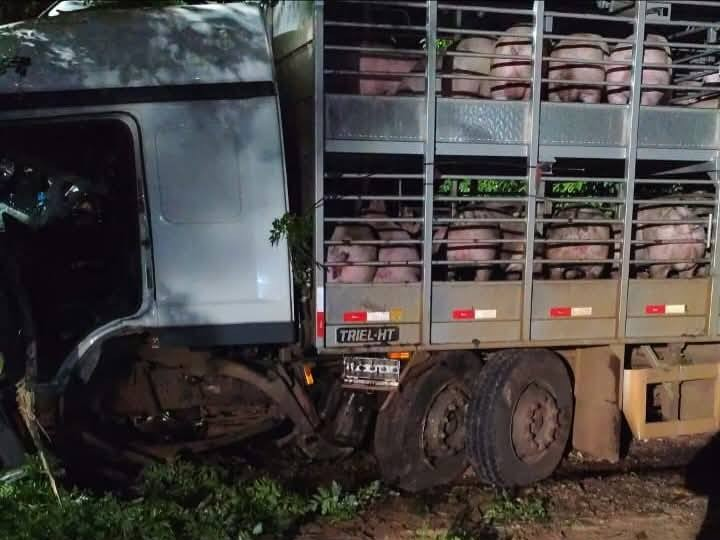 Um caminhão bitruck carregado com suínos saiu da pista na noite de quarta-feira (19) em trecho próximo a Sarandi, deixando o motorista ferido. O Corpo de Bombeiros Militares de Sarandi prestou atendimento imediato e encontrou o condutor em estado estável, encaminhando-o ao Hospital Comunitário Sarandi – Sistema de Saúde Vila Nova para avaliação médica.