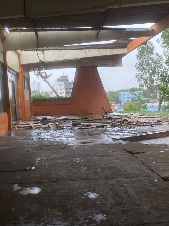 Uma seção da cobertura da Rodoviária de Palmeira das Missões caiu na tarde desta segunda-feira (22), causando danos materiais no local. O incidente foi registrado por volta das 16h20min.