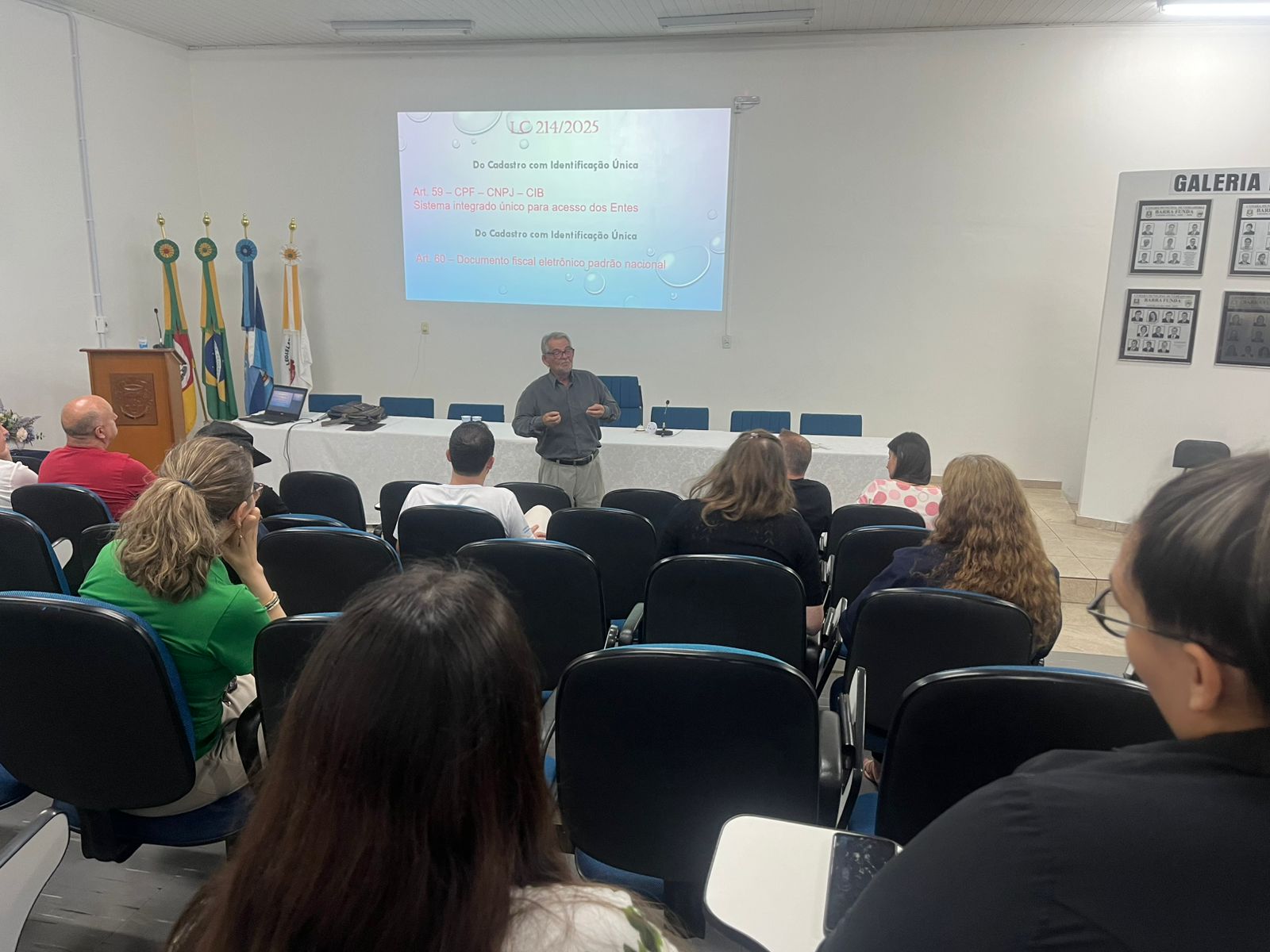 O palestrante foi Leandro Costantin, consultor tributário municipal e especialista em Tributação Municipal e Processos Administrativos Fiscais. Durante a explanação, ele destacou que a transição da Reforma Tributária iniciou em 2026 e que as alterações impactaram diretamente municípios e empresas.
