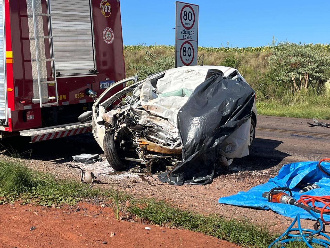 Com a força da colisão, o motorista do carro ficou preso às ferragens e morreu ainda no local. Já o condutor do caminhão não sofreu ferimentos.