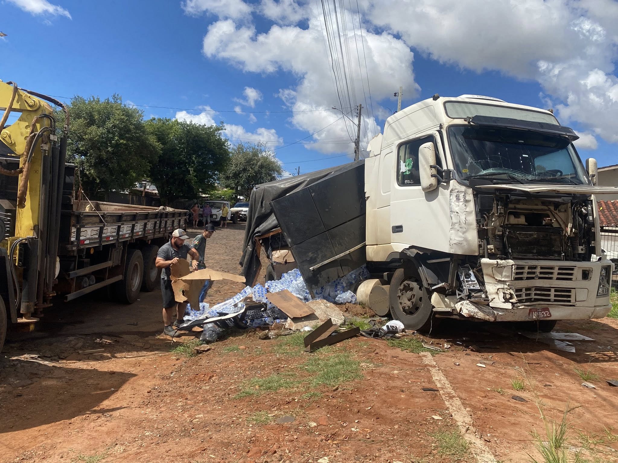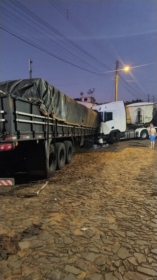 Um acidente envolvendo dois caminhões foi registrado por volta das 20h de sábado (13) na rua Miguel Rocha Sampaio, no bairro Lutz, em Palmeira das Missões. Um caminhão Volvo, carregado com água mineral e estacionado na via, desceu desgovernado, sem motorista, e colidiu contra um caminhão Scania que também estava estacionado no sentido bairro–centro.