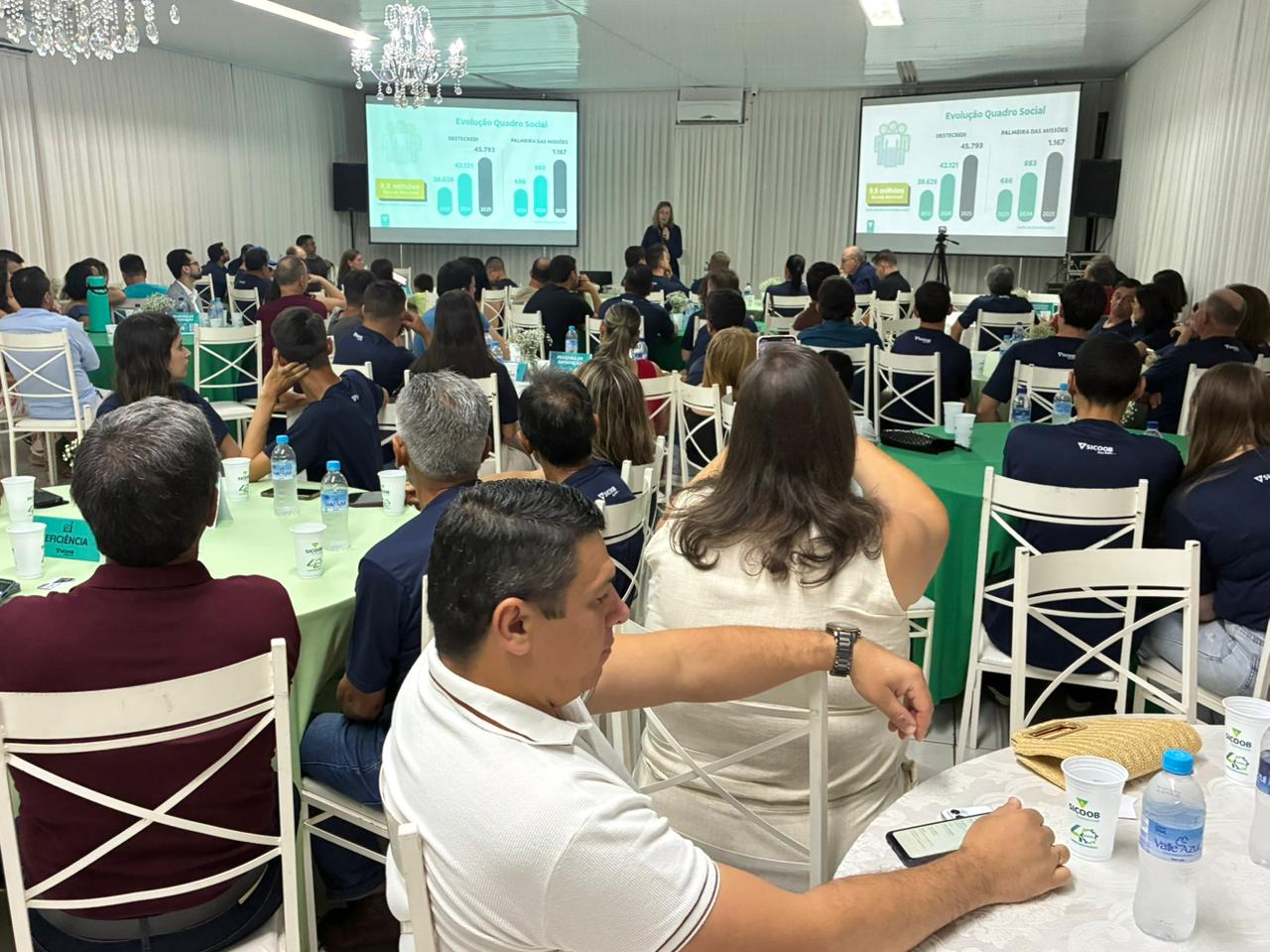 A Sicoob Oestecredi apresentou, na noite de quinta-feira (12), os resultados de 2025 e as projeções para 2026 durante pré-assembleia realizada em Palmeira das Missões. O encontro ocorreu no Restaurante do Parque de Exposições Tealmo José Schardong e reuniu cooperados, lideranças e autoridades. A programação foi simultânea em Palmeira das Missões e em Santo Cristo.