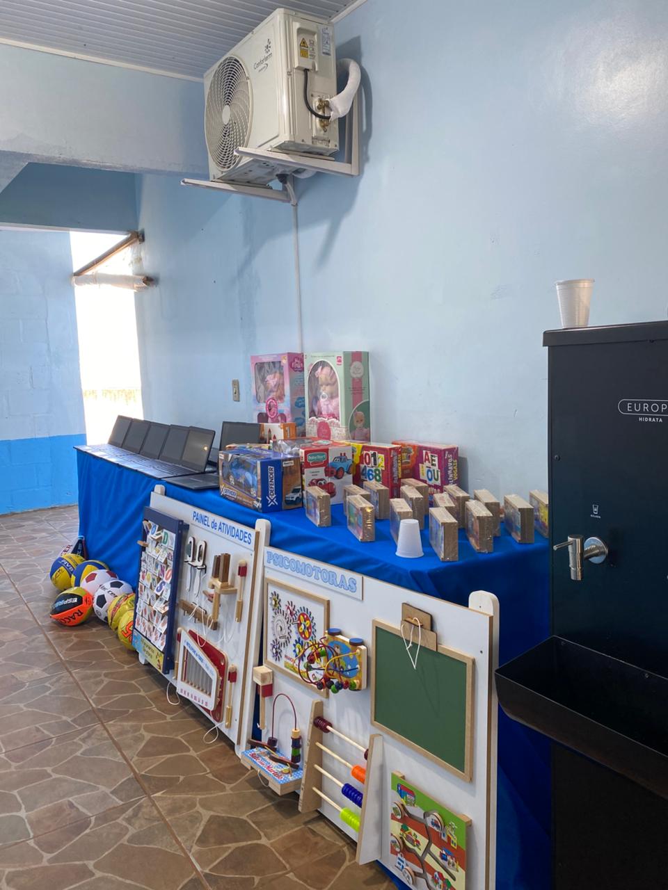 Na Escola Infantil Sonho Meu, foi entregue uma nova sala de aula, com investimento de R$ 261 mil, já equipada com mobiliário. O espaço também recebeu melhorias estruturais, climatização, brinquedos, jogos pedagógicos, bebedouro e implantação de playground.