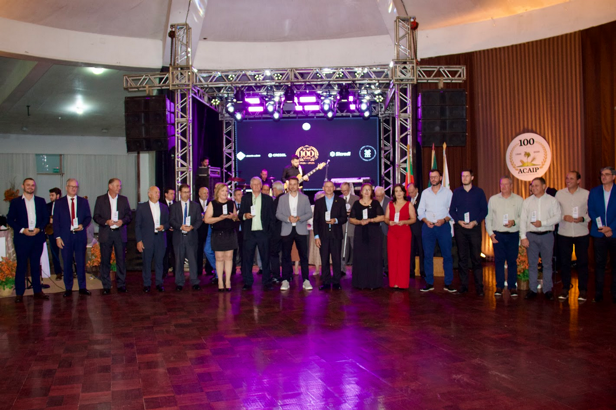A Associação Comercial, Agroindustrial e de Serviços de Palmeira das Missões (ACAIP) celebrou seus 100 anos de história com um jantar baile realizado na noite de sábado (11), no Clube Centenário, em Palmeira das Missões. A programação contou com homenagens a ex-presidentes da entidade, reconhecendo a contribuição de cada gestão ao longo das décadas de atuação.